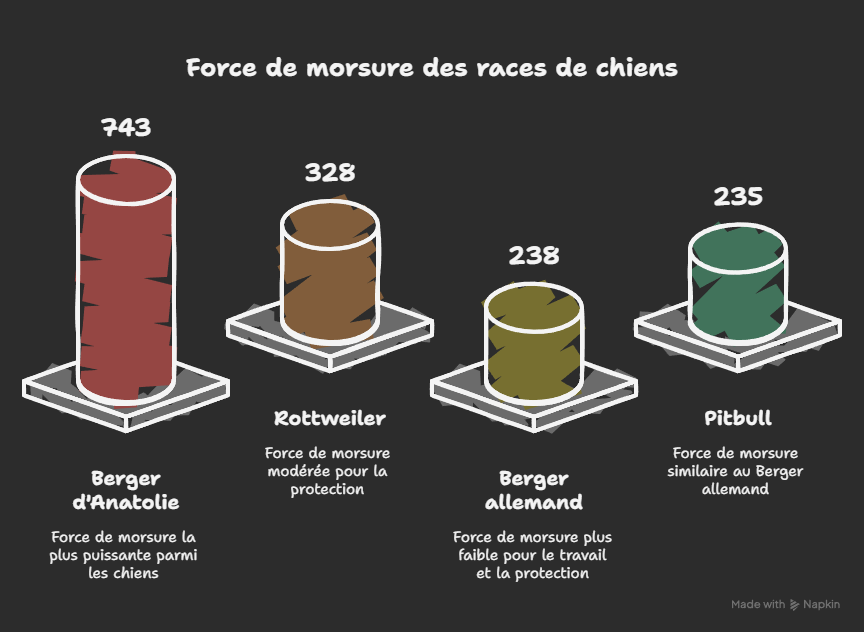 Parlons chiffres : la force de morsure du Kangal atteint 743 PSI (pounds per square inch), ce qui en fait l’une des mâchoires les plus puissantes du monde canin ! Pour vous donner une idée, c’est plus fort qu’un lion. Cette donnée impressionnante s’explique par sa fonction première de protecteur face aux grands prédateurs.